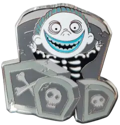 Barrel is an Open Edition pin from the The Nightmare Before Christmas Skull and Crossbones Tombstones Mystery Collection pin series. It was originally released on , 2024 and was available from Multiple Sources (WDW, DLR, etc.).
