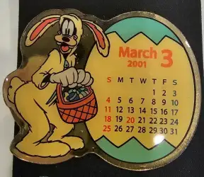 Goofy as Easter Bunny - March is an Open Edition pin from the TDL 2001 Calendar pin series. It was originally released on , 2001 and was available from Tokyo Disneyland Resort .