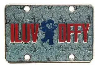 ILUV DFFY is a Limited Release pin from the Gear Up For Adventure License Plate Mystery Collection pin series. It was originally released on , 2012 and was available from Disneyland Resort .