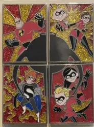 The Incredibles Limited Release Set is a Limited Release 4-pin set from the 2013 Pixar Mystery Collection pin series. It was originally released on , 2013 and was available from Multiple Sources (WDW, DLR, etc.).