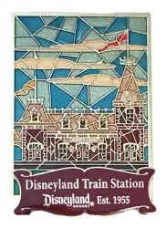 Disneyland Train Station is a Limited Edition (LE) 500 pin from the Stained Glass - 2008 Pin of the Month - Cast Exclusive pin series. It was originally released on , 2008 and was available from Disneyland Resort .