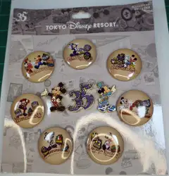 Mickey Tin Badge Set is a Limited Release 3-pin set from the Tokyo Disneyland 35th Anniversary pin series. It was available from Tokyo Disneyland Resort .
