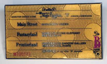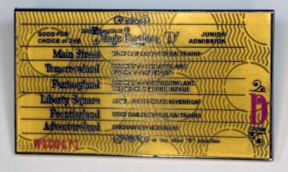 D Ticket is an Open Edition pin in the Ticket Book Booster Set 10-pin set from the Ticket Book pin series. It was available from Walt Disney World .
