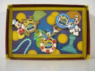 2001 Logo Treasure Chest Boxed Set - Full Set is a Limited Edition (LE) 3-pin set from the Toon Disney pin series. It was originally released on , 2001 and was available from Walt Disney Studios .