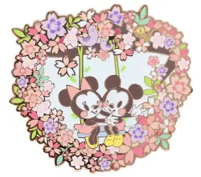 Mickey & Minnie Swing is a Limited Edition (LE) 300 pin from the Pink A La Mode (PALM) - Cherry Blossoms pin series. It was originally released on , 2024 and was available from an Officially Licensed Disney trading pin vendor (see description for more information).