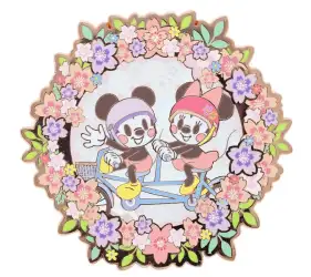 Mickey & Minnie Bicycle is a Limited Edition (LE) 300 pin from the Pink A La Mode (PALM) - Cherry Blossoms pin series. It was originally released on , 2024 and was available from an Officially Licensed Disney trading pin vendor (see description for more information).