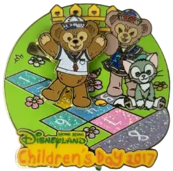 2017 - Duffy and Friends Playing Hopscotch Slider is a Limited Edition (LE) 300 pin from the Children's Day pin series. It was originally released on , 2017 and was available from Hong Kong Disneyland .
