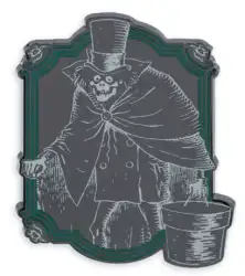 The Hatbox Ghost ONLY is a Limited Edition (LE) 5000 pin from the The Haunted Mansion Steel Carded Set pin series. It was originally released on , 2024 and was available from Multiple Sources (WDW, DLR, etc.).