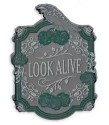 The Raven "Look Alive" - ONLY is a Limited Edition (LE) 5000 pin from the The Haunted Mansion Steel Carded Set pin series. It was originally released on , 2024 and was available from Multiple Sources (WDW, DLR, etc.).