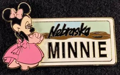 Nebraska - Minnie is a Limited Edition (LE) 2000 pin from the Across America License Plate Series pin series. It was originally released on , 2003 and was available from Disney Store Japan .