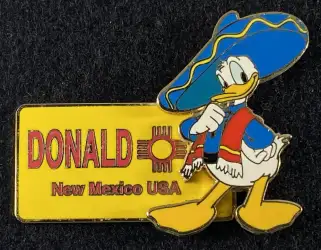 New Mexico - Donald is a Limited Edition (LE) 2000 pin from the Across America License Plate Series pin series. It was originally released on , 2003 and was available from Disney Store Japan .