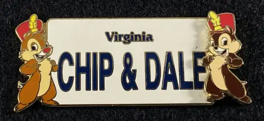 Virginia - Chip & Dale is a Limited Edition (LE) 2000 pin from the Across America License Plate Series pin series. It was originally released on , 2003 and was available from Disney Store Japan .