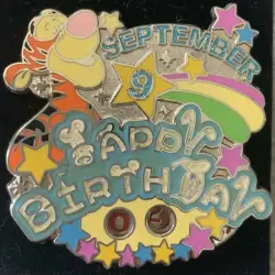 September (Tigger) is an Open Edition pin from the HKDL Character Birthday Spinners pin series. It was originally released in July, 2008 and was available from Hong Kong Disneyland .