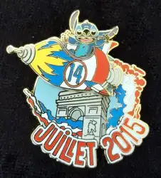 14 juillet 2015 Stitch flying over the Arc de Triomphe is a Limited Edition (LE) 800 pin from the Bastille Day pin series. It was originally released on , 2015 and was available from Disneyland Resort Paris .
