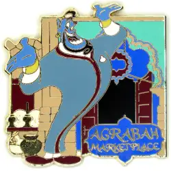 Agrabah Marketplace Genie is an Open Edition pin from the Tokyo DisneySea Monthly Pin Collection pin series. It was originally released on , 2008 and was available from Tokyo Disneyland Resort .