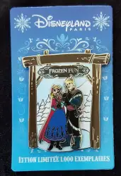 Anna and Kristoff is a Limited Edition (LE) 1000 pin from the Frozen Fun Pin Trading Day pin series. It was originally released on , 2015 and was available from Disneyland Resort Paris .