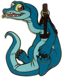 Joanna the Goanna in Harness is an Open Edition pin from the Fantasy Pin Series: Bilby Bloom pin series. It is an Unlicensed (Fantasy) pin, so therefore it is not allowed to be traded in the Disney Parks.
