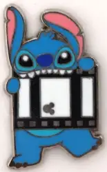 Stitch Eating Film is an Open Edition pin from the Stitch Hidden Mickey Shanghai pin series. It was originally released in January, 2023 and was available from Shanghai Disney Resort .