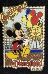 Paradise Pier - Mickey is a Limited Edition (LE) 1000 pin from the Greetings from Disneyland Postcards 2006 Collection pin series. It was originally released on , 2006 and was available from Disneyland Resort .