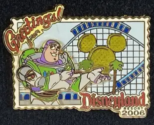 California Screamin - Buzz Lightyear is a Limited Edition (LE) 1000 pin from the Greetings from Disneyland Postcards 2006 Collection pin series. It was originally released on , 2006 and was available from Disneyland Resort .