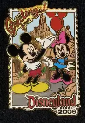 Big Thunder Mountain Railroad - Mickey & Minnie is a Limited Edition (LE) 1000 pin from the Greetings from Disneyland Postcards 2006 Collection pin series. It was originally released on , 2006 and was available from Disneyland Resort .