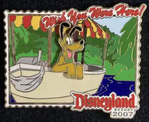 Jungle Cruise - Pluto is a Limited Edition (LE) 1000 pin from the Wish You Were Here! - Postcards from Disneyland pin series. It was originally released on , 2007 and was available from Disneyland Resort .