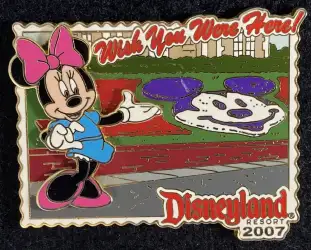 Disneyland Main Entrance - Minnie is a Limited Edition (LE) 1000 pin from the Wish You Were Here! - Postcards from Disneyland pin series. It was originally released on , 2007 and was available from Disneyland Resort .