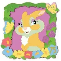 Miss Bunny is a Limited Edition (LE) 300 pin from the Bambi 75th Anniversary pin series. It was originally released on , 2017 and was available from Disney Studio Store Hollywood / Soda Fountain .