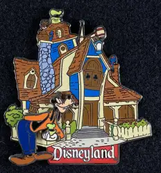 Toontown - Goofy’s House is an Open Edition pin from the Disneyland Attractions (2001) Collection pin series. It was originally released on , 2000 and was available from Disneyland Resort .