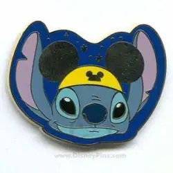 Stitch is a Limited Edition (LE) 1500 pin from the Golden Ear Hats Mystery Tin pin series. It was originally released in January, 2006 and was available from Disneyland Resort .