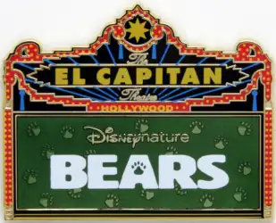 Disneynature Bears is a Limited Edition (LE) 400 pin from the El Capitan Marquee Series pin series. It was originally released on , 2014 and was available from Disney Studio Store Hollywood / Soda Fountain .