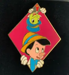 Pinocchio & Jiminy Cricket is a Limited Edition (LE) 250 pin from the Disney Auctions (P.I.N.S.) - Peek-A-Boo pin series. It was originally released on , 2004 and was available from Disney Auctions .