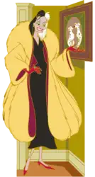 Cruella de Vil is a Limited Edition (LE) 400 pin from the D23 Expo 2024: Disney Villains Collection pin series. It was originally released on , 2024 and was available from Walt Disney Imagineering .