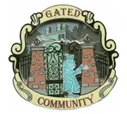 Gated Communities (Framed Completer) is a Limited Edition (LE) 50 pin from the Haunted Mansion O'Pin House - Amenities pin series. It was originally released on , 2009 and was available from Disneyland Resort .