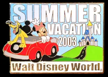 Mickey, Minnie & Pluto Driving to Castle is a Limited Edition (LE) 2000 pin from the Summer Vacation 2003 pin series. It was originally released on , 2003 and was available from Walt Disney World .