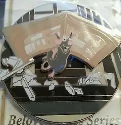 Ratatouille is a Limited Edition (LE) 300 pin from the Beloved Tales Series pin series. It was originally released on , 2011 and was available from Disney Studio Store Hollywood / Soda Fountain .