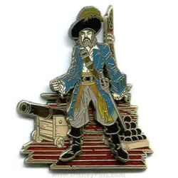 Pirate with Cannon is a Limited Edition (LE) 1250 pin from the Pirates of the Caribbean - Legend of the Golden Pins pin series. It was originally released on , 2006 and was available from Disneyland Resort .