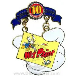 Wet Paint Sign is a Limited Edition (LE) 1000 pin from the Disney Pin Trading 10th Anniversary: Decade of Magical Trades pin series. It was originally released on , 2009 and was available from Walt Disney World .