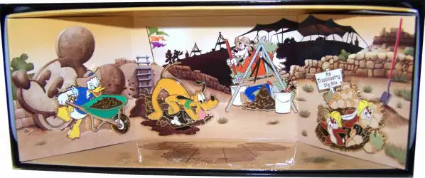 Archaeology Team Diorama Box Set is a Limited Edition (LE) 300 4-pin set from the The Museum of Pin-tiquities - Disney Pin Celebration 2009 pin series. It was originally released on , 2009 and was available from Walt Disney World .