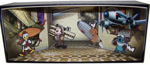 Flying Machines Diorama Box Set is a Limited Edition (LE) 300 4-pin set from the The Museum of Pin-tiquities - Disney Pin Celebration 2009 pin series. It was originally released on , 2009 and was available from Walt Disney World .