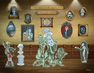 Pin features Constance Hatchaway (Black Widow Bride) , Master Gracey , Singing Busts and Graveyard Ghosts
