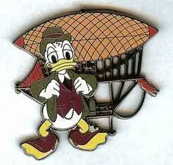 Donald Duck is a Limited Edition (LE) 300 pin in the Flying Machines Diorama Box Set 4-pin set from the The Museum of Pin-tiquities - Disney Pin Celebration 2009 pin series. It was originally released on , 2009 and was available from Walt Disney World .