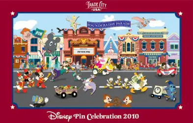 Founder's Day Parade Framed Set is a Limited Edition (LE) 100 0-pin set from the Trade City, USA pin series. It was originally released on , 2010 and was available from Walt Disney World .