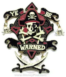 Ye Be Warned Jumbo Pin is a Limited Edition (LE) 750 pin from the Pirates of the Caribbean pin series. It was originally released on , 2006 and was available from Disneyland Resort .