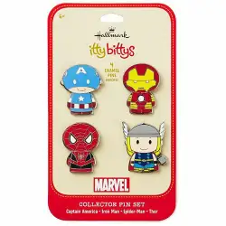 Marvel Itty Bitty Pin Set is an Open Edition 4-pin set from the Hallmark Itty Bitty pin series. It was originally released in January, 2017 and was available from an Officially Licensed Disney trading pin vendor (see description for more information).
