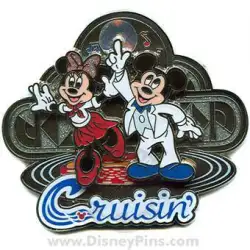 Minnie and Mickey Dancing is a Limited Edition (LE) 500 pin from the Cruisin' Collection pin series. It was originally released on , 2007 and was available from Disney Cruise Line .