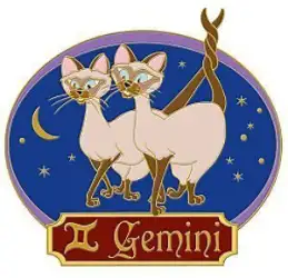 Si & Am and Gemini is a Limited Edition (LE) 300 pin from the Zodiac Signs / Horoscope pin series. It was originally released in January, 2009 and was available from Disney Store US .