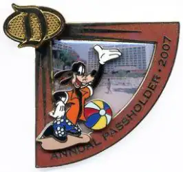 Goofy at the Disneyland Hotel is a Limited Release pin from the Annual Passholder 2007 Quadrant pin series. It was originally released on , 2007 and was available from Disneyland Resort .