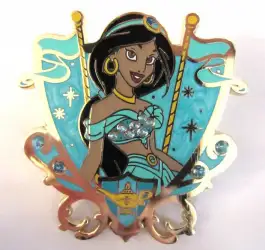 Jasmine is an Open Edition pin from the Princess Jeweled Crest Collection pin series. It was originally released on , 2013 and was available from Multiple Sources (WDW, DLR, etc.).