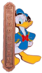 Donald Duck is an Open Edition pin from the El Capitan Theatre Sign & Character Series pin series. It was originally released on , 2024 and was available from Disney Studio Store Hollywood / Soda Fountain .